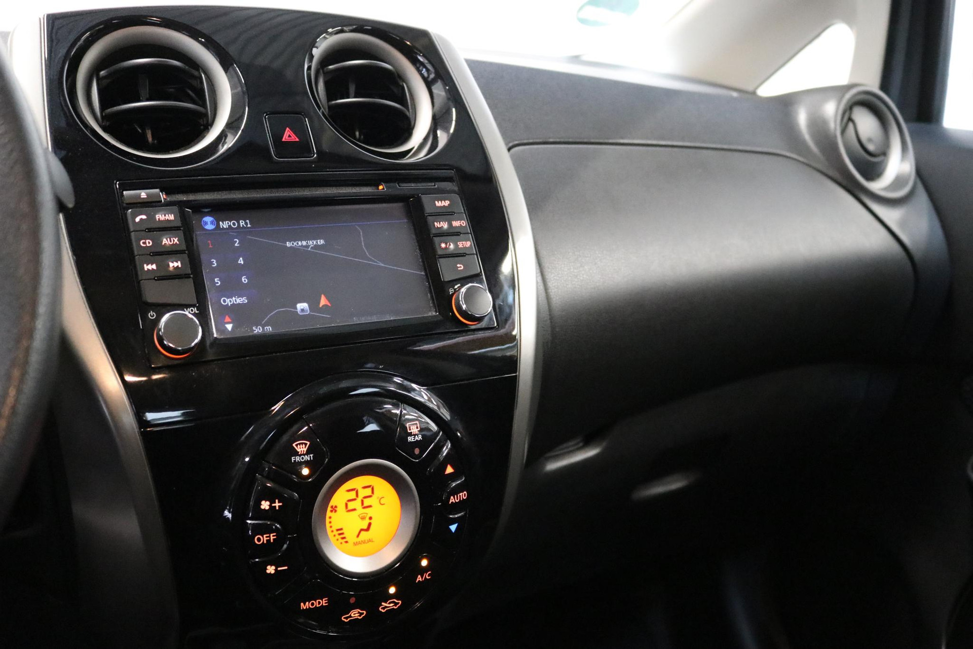 Of het buiten nu warm is of koud, dankzij electronic climate control is het binnen altijd behaaglijk. Natuurlijk is een complete auto als deze ook voorzien van sensoren die de omgeving in de gaten houden. Deze Nissan heeft niet alleen een automatisch inschakelbare verlichting aan boord, maar ook een regensensor. Voorzien van cruise control, dus vriendelijk voor de inzittenden én de benzinetank. Zoals u weet, liggen de autosleutels altijd onderin de boodschappentas die u sjouwt. Geen probleem bij deze Nissan Note. De token in uw jaszak wordt van dichtbij gesignaleerd door de keyless entry en alle sloten gaan automatisch open. Natuurlijk behoren navigatiesysteem, centrale deurvergrendeling met afstandsbediening en boordcomputer ook tot de uitrusting van deze complete auto.