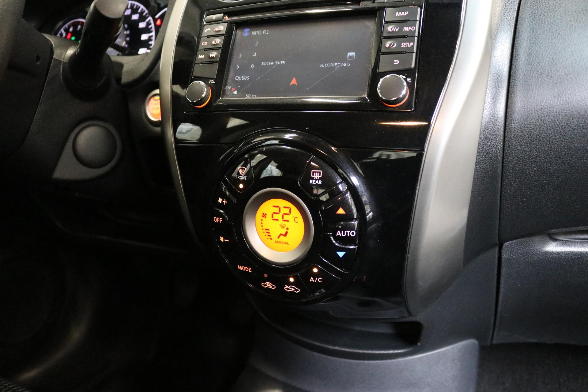 Of het buiten nu warm is of koud, dankzij electronic climate control is het binnen altijd behaaglijk. Natuurlijk is een complete auto als deze ook voorzien van sensoren die de omgeving in de gaten houden. Deze Nissan heeft niet alleen een automatisch inschakelbare verlichting aan boord, maar ook een regensensor. Voorzien van cruise control, dus vriendelijk voor de inzittenden én de benzinetank. Zoals u weet, liggen de autosleutels altijd onderin de boodschappentas die u sjouwt. Geen probleem bij deze Nissan Note. De token in uw jaszak wordt van dichtbij gesignaleerd door de keyless entry en alle sloten gaan automatisch open. Natuurlijk behoren navigatiesysteem, centrale deurvergrendeling met afstandsbediening en boordcomputer ook tot de uitrusting van deze complete auto.