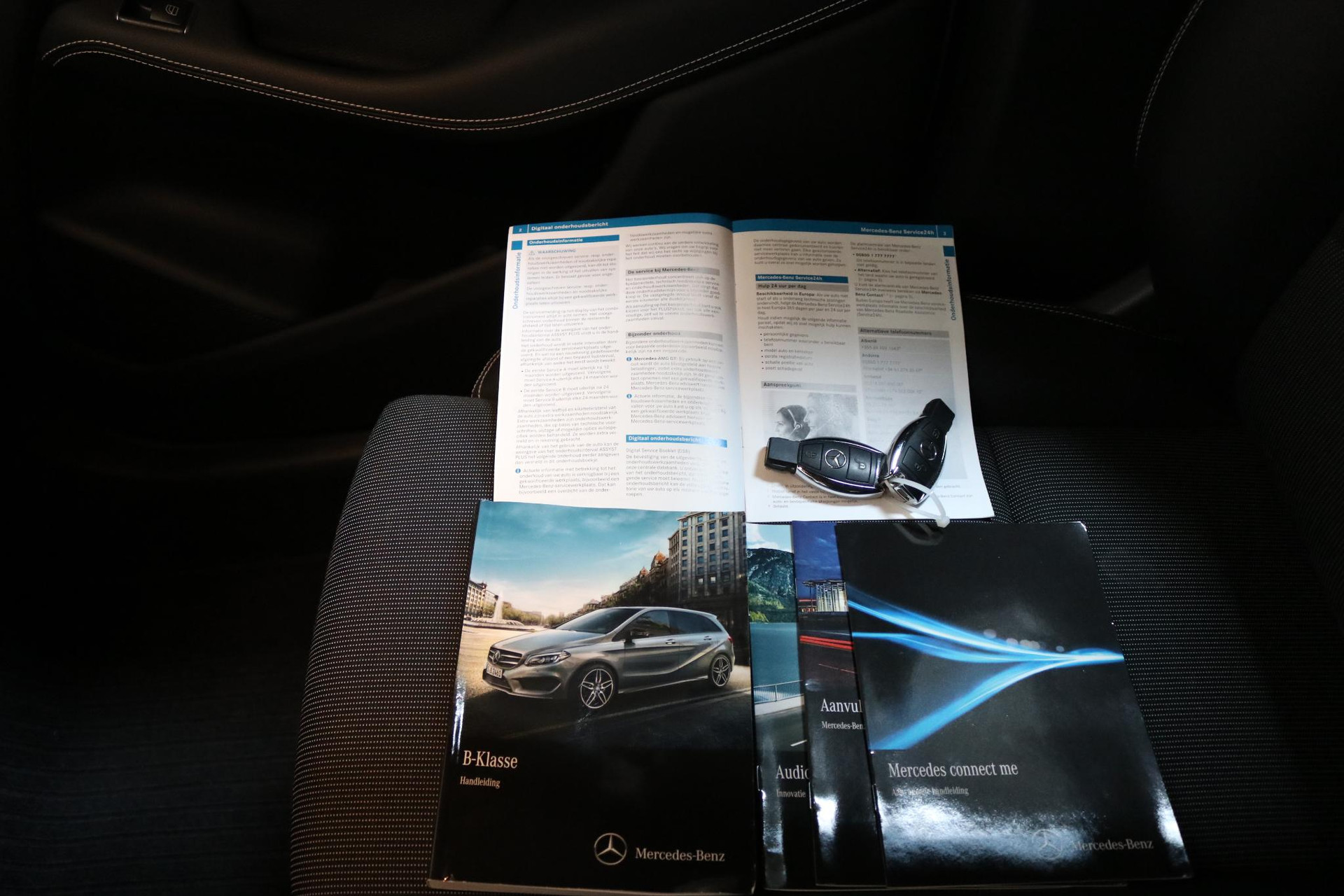 Navigatie, onderhoudsstatus, vergrendeling, audio... de mogelijkheden van remote services zijn haast oneindig. Ook deze auto laat zich bedienen en analyseren via uw smartphone! Kaartlezen is verleden tijd, dankzij het aanwezige full map navigatiesysteem. Omdat u nu eenmaal niet overal ogen heeft, is deze Mercedes-Benz B-klasse voorzien van een achteropkomend verkeer waarschuwing die registreert wanneer de afstand tot uw achterligger te krap is. Onderweg wil je zo min mogelijk onnodige of afleidende handelingen verrichten. Vandaar ook de audiobediening op het stuur. De parkeersensoren vertellen precies hoe ver u kunt gaan. Hoe dichter op een obstakel, hoe sneller de piepjes. En dan is deze auto ook nog eens voorzien van regensensor, cruise control, airconditioning, buitentemperatuurmeter, lederen stuur en centrale deurvergrendeling met afstandsbediening.